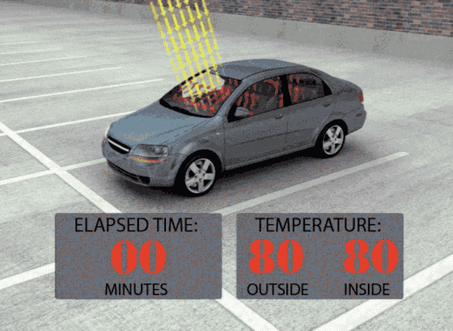 因为太阳直射时,阳光可以穿透玻璃直射入车内,仪表盘、方向盘等都会持续散发热量,内外空气不流通,最终形成了温室效应。
