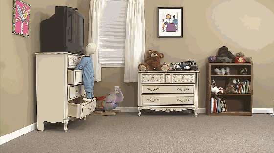 比如有些孩子喜欢翻箱倒柜,把自己藏在自认为安全看不见的地方。在这过程中是非常危险的。