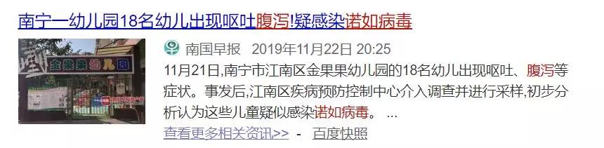 除此之外,广西南宁、天津等多地也发生了诺如病毒爆发的事件: