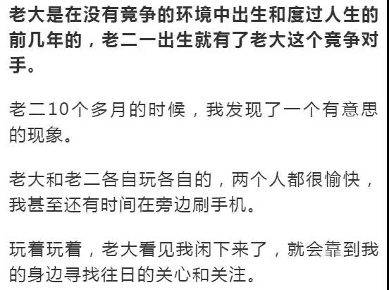 老二从小处在竞争的环境中,时刻与老大这个陪练一起练上几下。