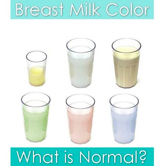 大多数时候母乳是乳白色的或者黄色,有点泛蓝,乳状。但是,如果你有足够久的喂奶经历,或者足够多挤奶喂养的经历,你可能会惊讶地发现,你的母乳有时候会呈现出别的颜色。