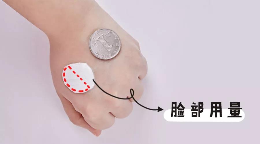 ● 脸部用量:宝宝用量为大人的一半,也就是一枚硬币大小的一半;