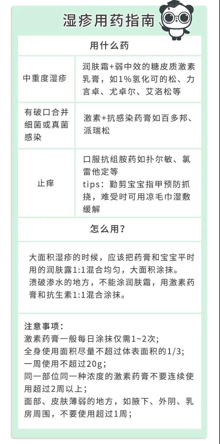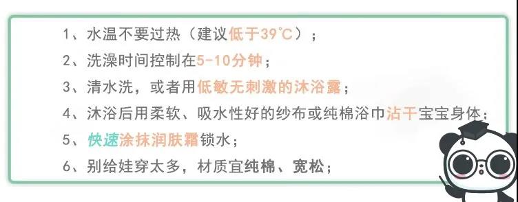 最后,熊猫君想告诉宝爸妈:照料湿疹宝宝别心急,更不要相信所谓的“根治神药”。做好保湿,严重时去正规医院就诊,谨遵医嘱用药,才是上上策哦!