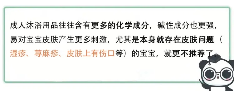 谨慎起见,熊猫君还是建议大家尽量别给宝宝混用大人的沐浴用品,包括洗发水和沐浴露。