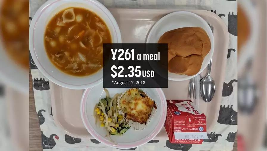 之所以价格那么低,是因为家长只需要承担食材的成本,学校午餐的人事费用,各地方政府会进行负担。