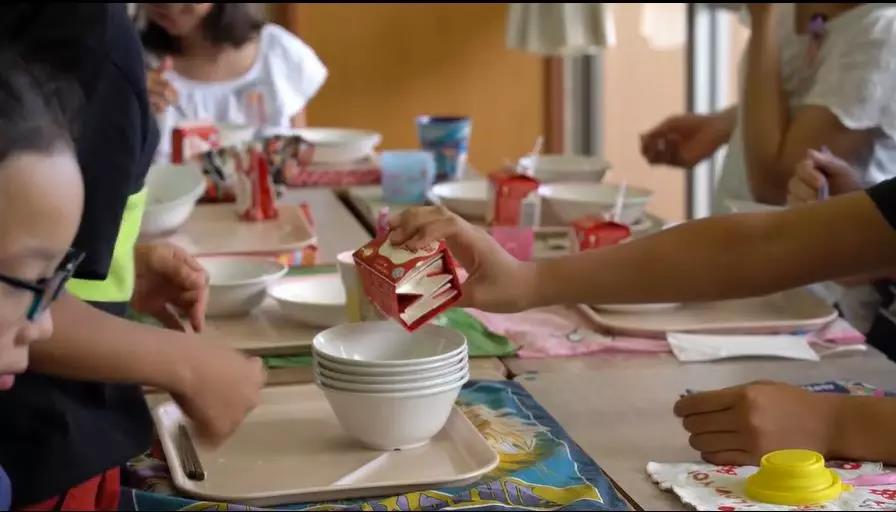 整个午餐的过程可以看到,对日本孩子来说,吃饭是件愉快的事,但同时也是需要认真对待的事。
