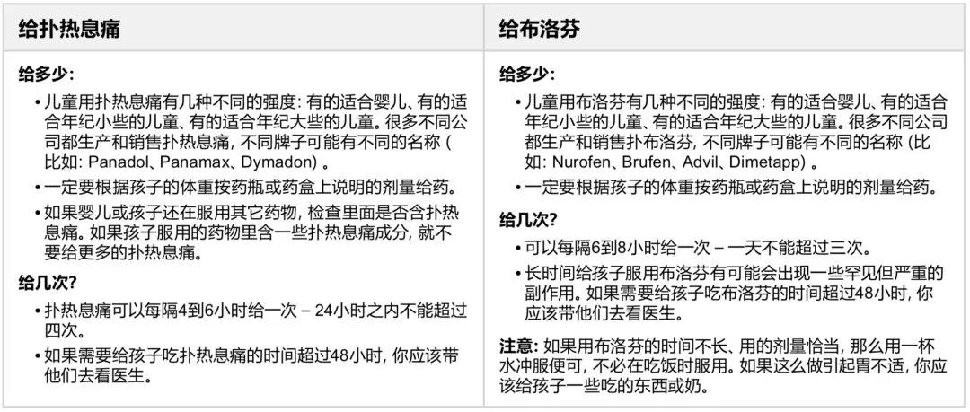 关于布诺芬和扑热息痛的给药次数和剂量: