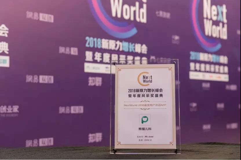 「熊猫儿科」在此次大会荣获「NextWorld2018最受用户欢迎APP奖」以表彰和鼓励「熊猫儿科」在用户口碑及移动医疗领域内的卓越贡献。