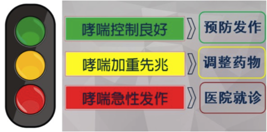 目前,根据症状轻重程度,将哮喘控制状态依次划分为绿色、黄色和红色三个区域,实施三色分区动态管理。